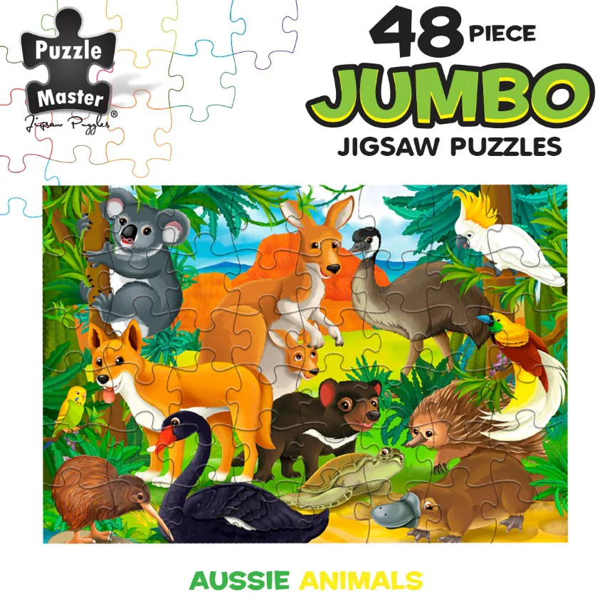 When it comes to the finest jigsaw puzzles down under, Puzzle Master truly reigns as the masters of their craft. Each of these 48 jumbo puzzle pieces is meticulously crafted to meet the highest standards, ensuring a top-notch experience. With vibrant and lively printing, the images burst with color, captivating young eyes. The sturdy card material guarantees that even the most enthusiastic little puzzle solvers won't damage the pieces. This jigsaw puzzle is an absolute delight for children to piece together, providing hours of amusement.